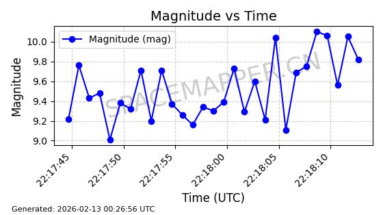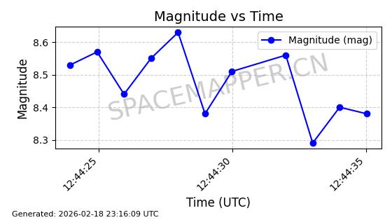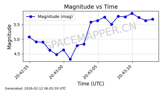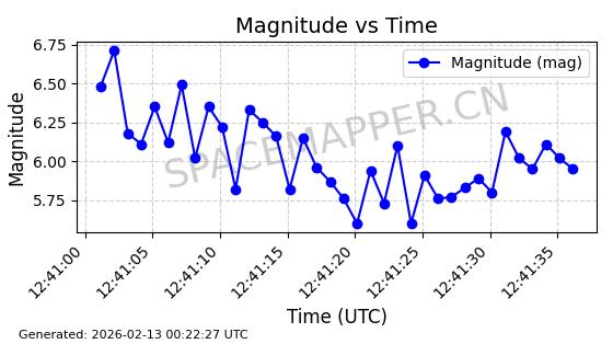 | STARLINK-30563 | 58042 | 58042 | 2023-10-09 同日期轨道 2023-156Q 同批次轨道 | 在轨 | 94分钟 | 53.1607 | 474.367 | 476.115 | 0.0001275 | 2026-02-18 07:28:09 | ||
