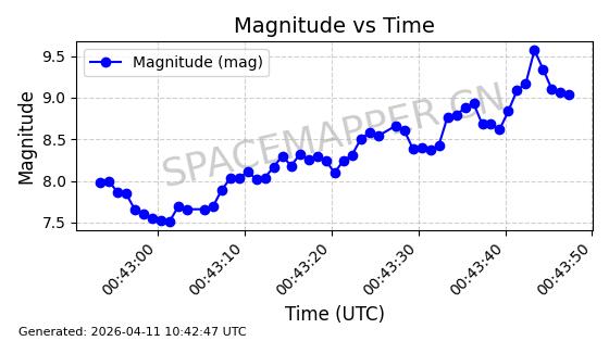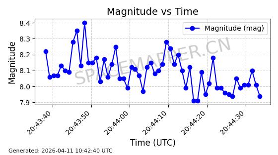 在轨 94分钟 43.0020 482.026 484.12 0.0001525 2026-04-09