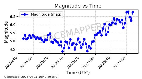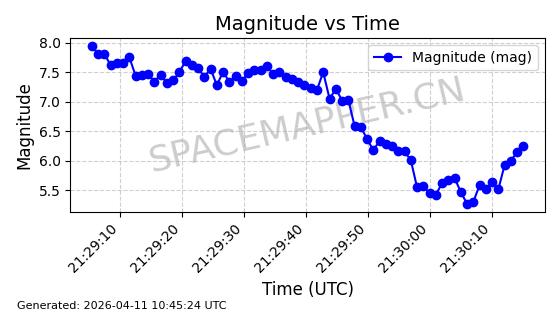 在轨 95分钟 53.2181 539.322 540.122 0.0000578 2026-04-09