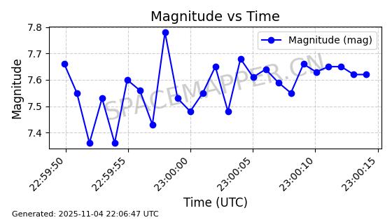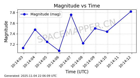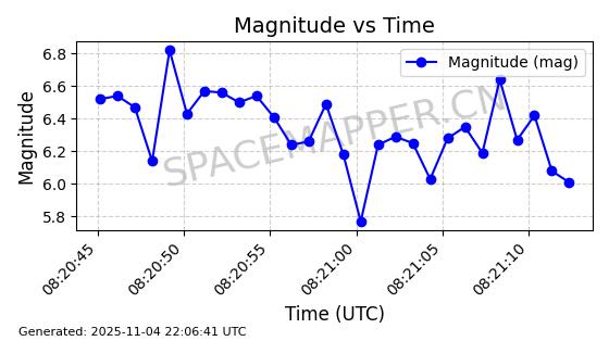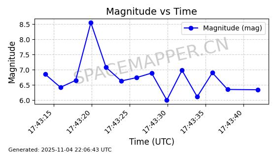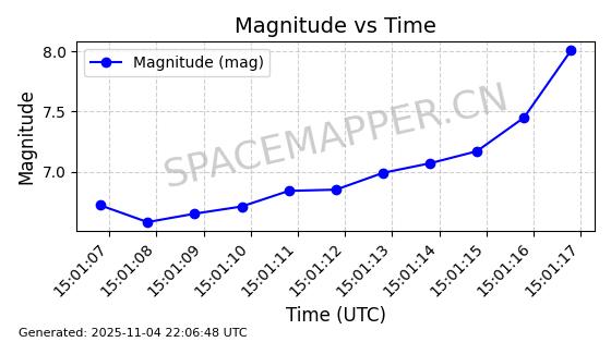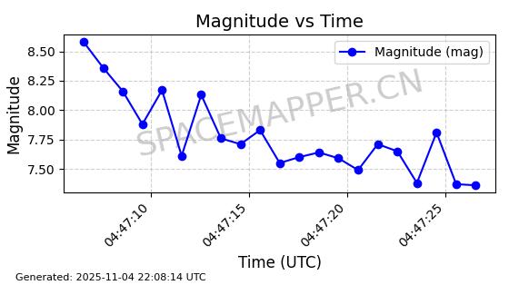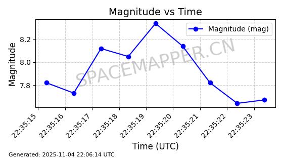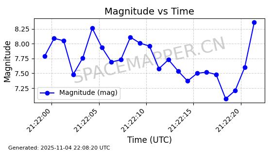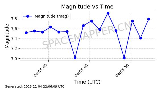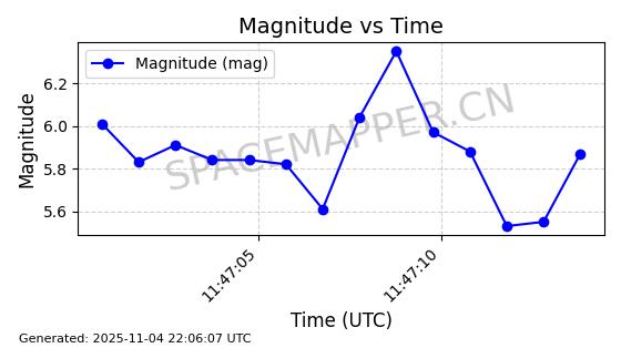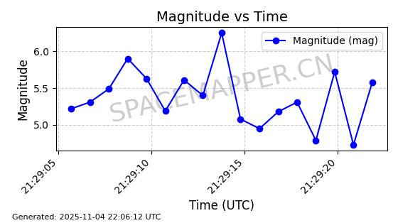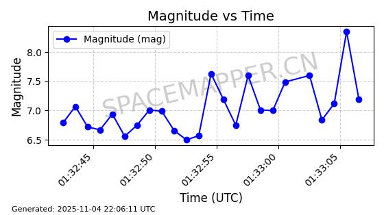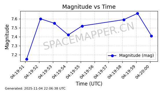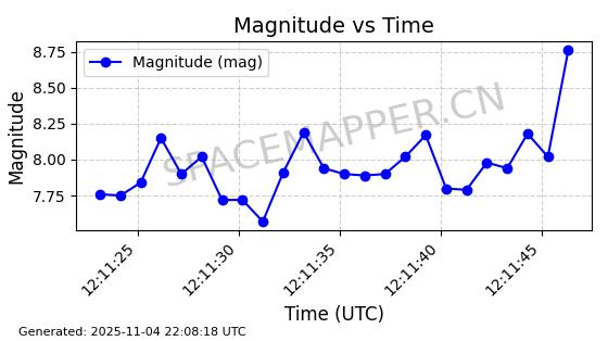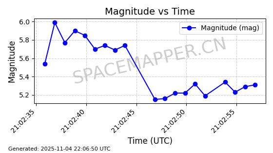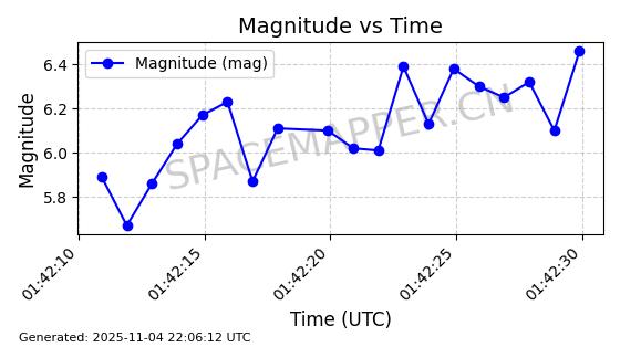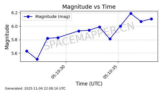 | STARLINK-5114 | 54003 | 54003 | 2022-10-05 同日期轨道 2022-125AR 同批次轨道 | 在轨 | 95分钟 | 53.2190 | 538.624 | 540.898 | 0.0001643 | 2025-11-04 00:30:06 | ||