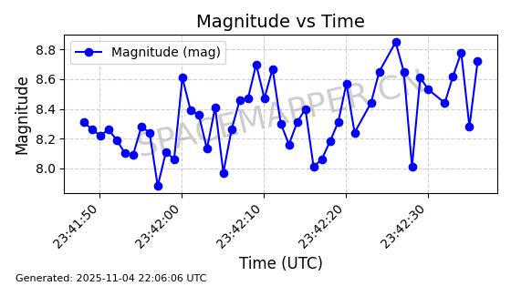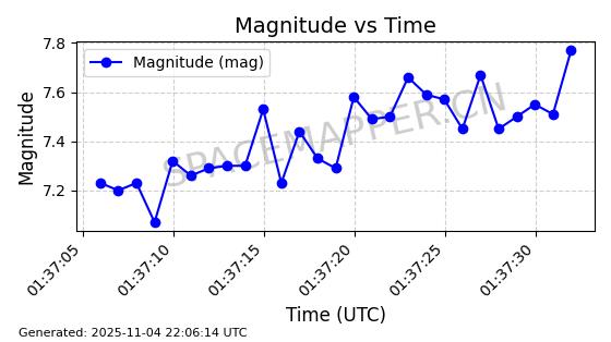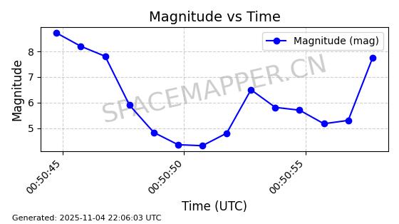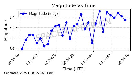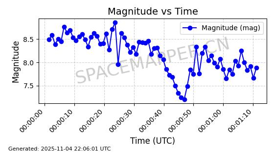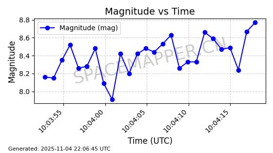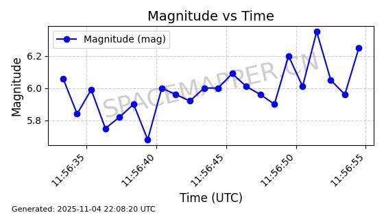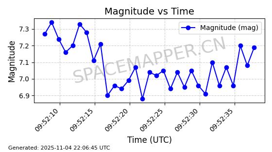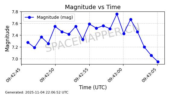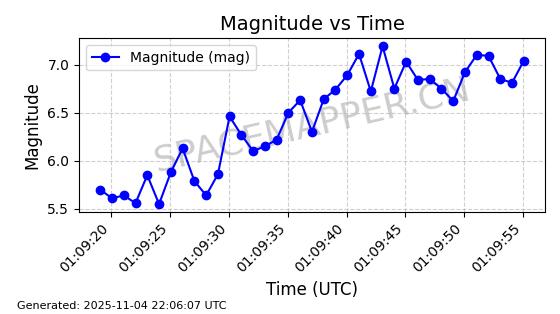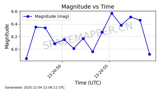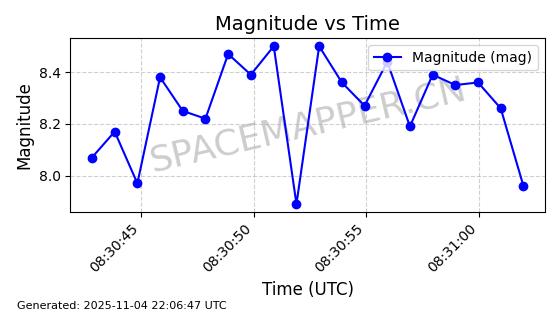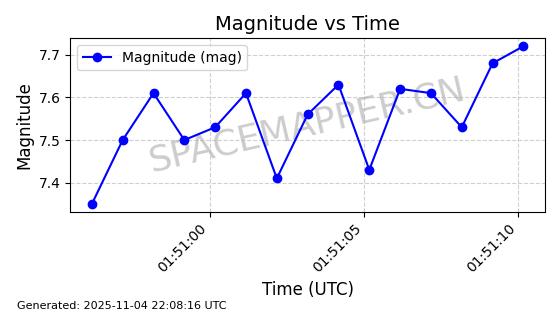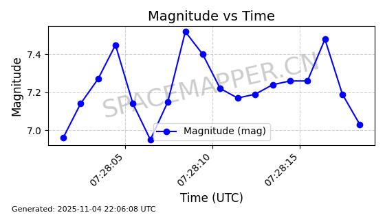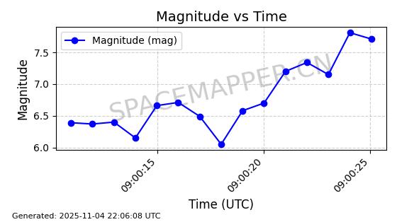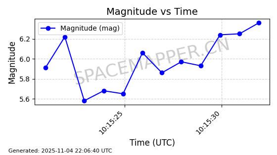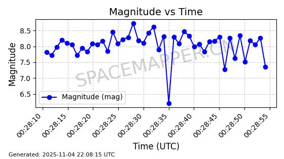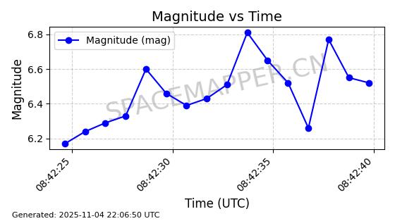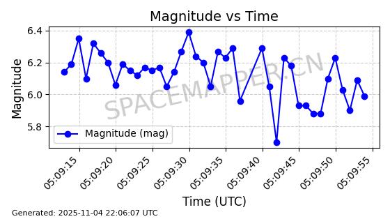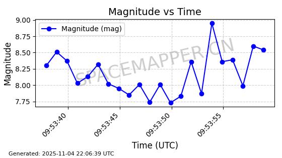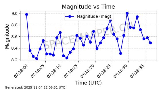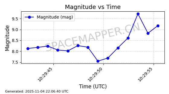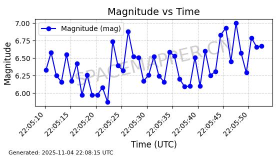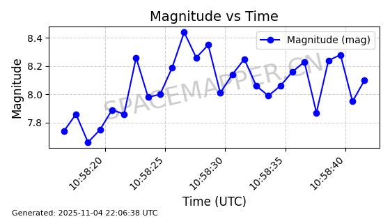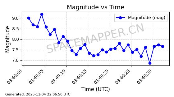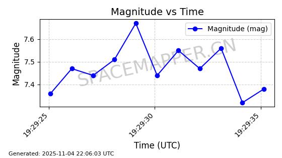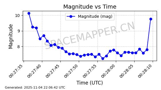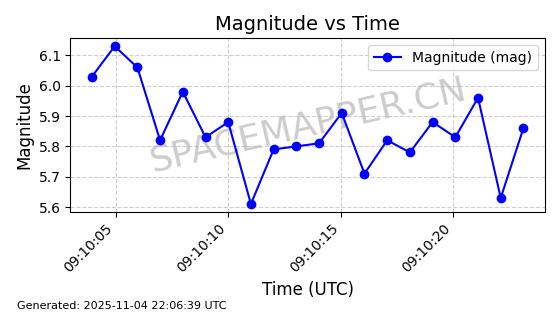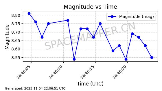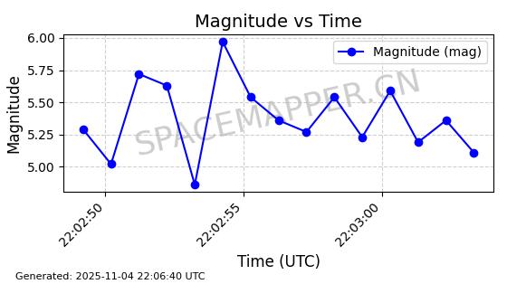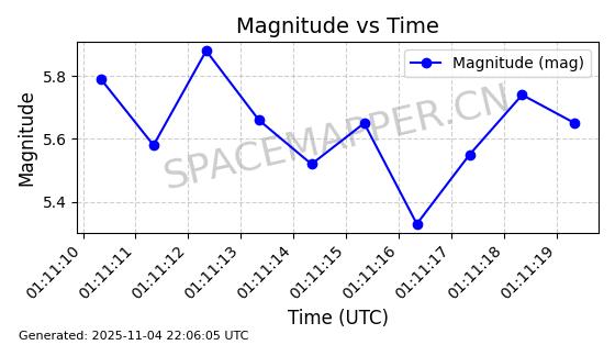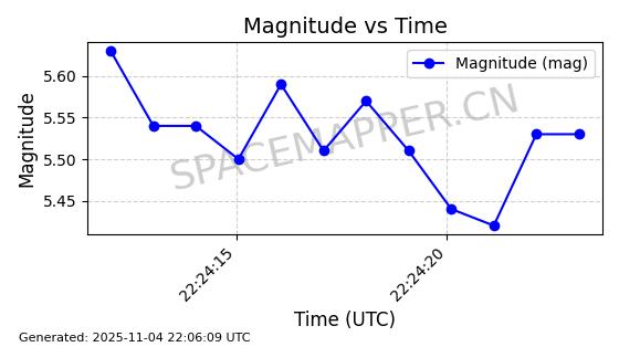 | STARLINK-5155 | 54170 | 54170 | 2022-10-28 同日期轨道 2022-141P 同批次轨道 | 在轨 | 95分钟 | 53.2162 | 538.536 | 540.962 | 0.0001753 | 2025-11-04 00:15:36 | ||