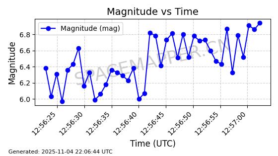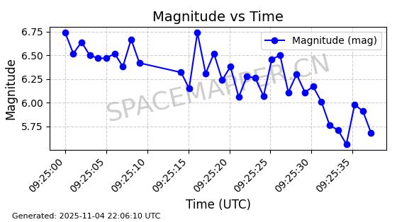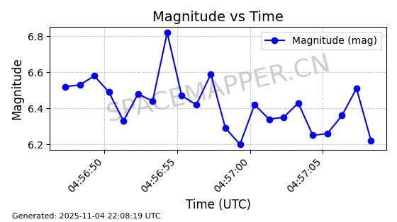 | STARLINK-5156 | 53973 | 53973 | 2022-10-05 同日期轨道 2022-125K 同批次轨道 | 在轨 | 95分钟 | 53.2185 | 538.93 | 540.566 | 0.0001182 | 2025-11-04 00:44:41 | ||