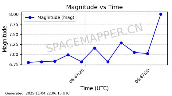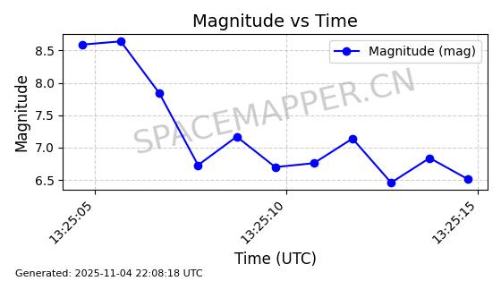 | STARLINK-5154 | 54176 | 54176 | 2022-10-28 同日期轨道 2022-141V 同批次轨道 | 在轨 | 95分钟 | 53.2185 | 538.506 | 540.982 | 0.0001789 | 2025-11-03 23:49:03 | ||