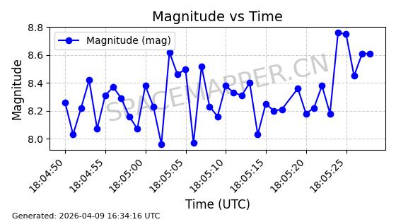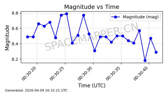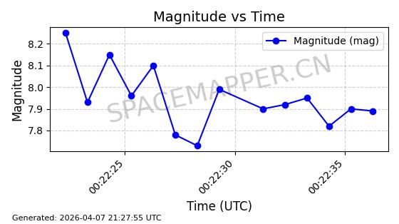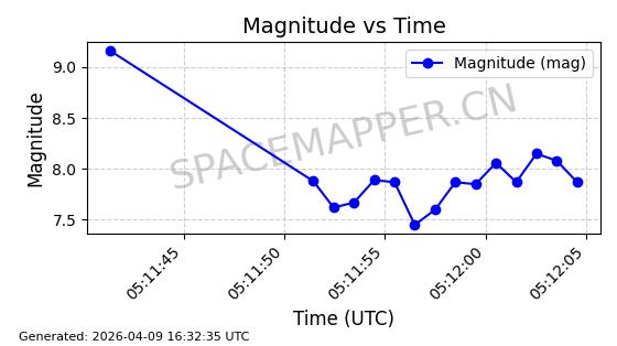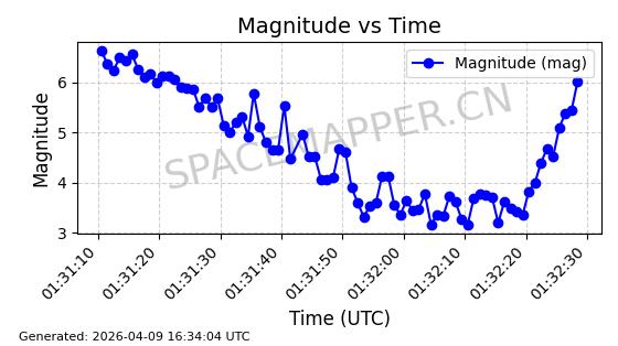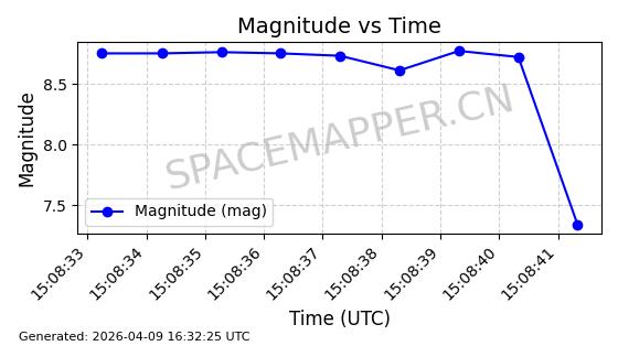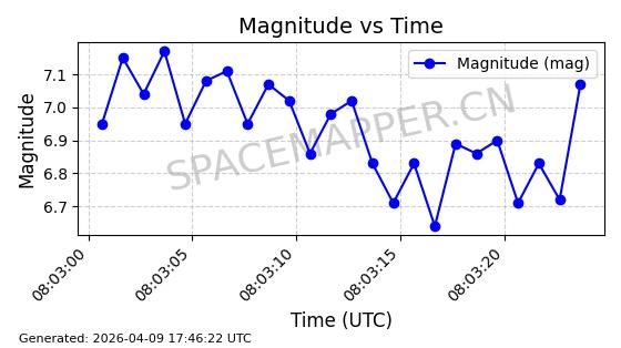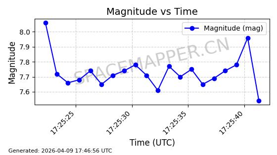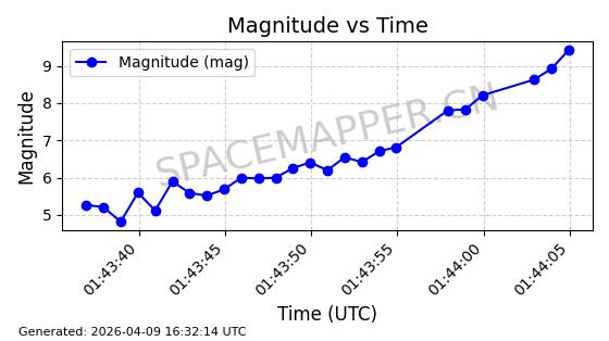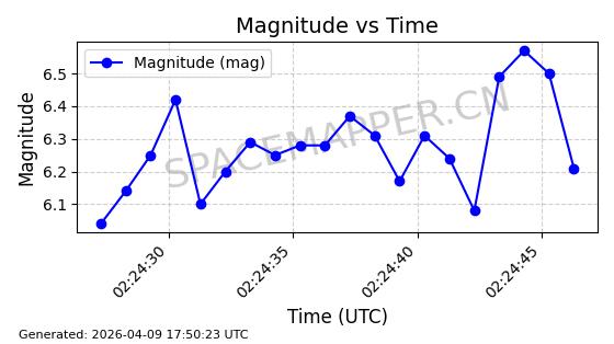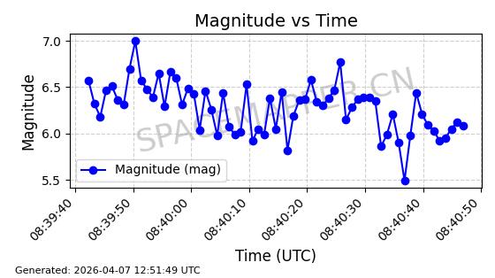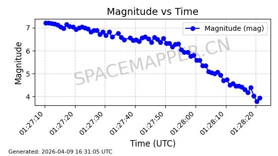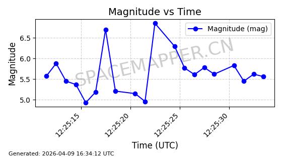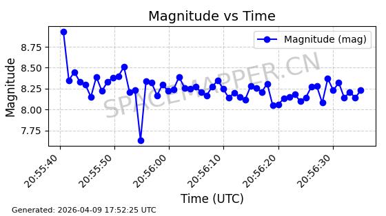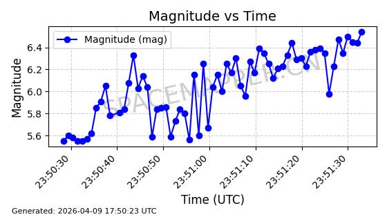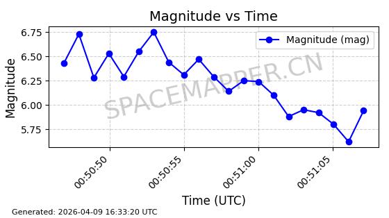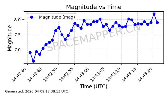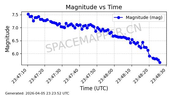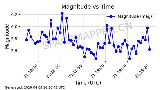 | STARLINK-5120 | 53982 | 53982 | 2022-10-05 同日期轨道 2022-125U 同批次轨道 | 在轨 | 95分钟 | 53.2174 | 538.713 | 540.789 | 0.0001500 | 2026-04-08 05:50:39 | ||