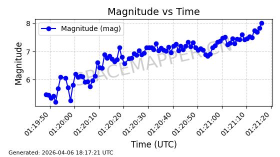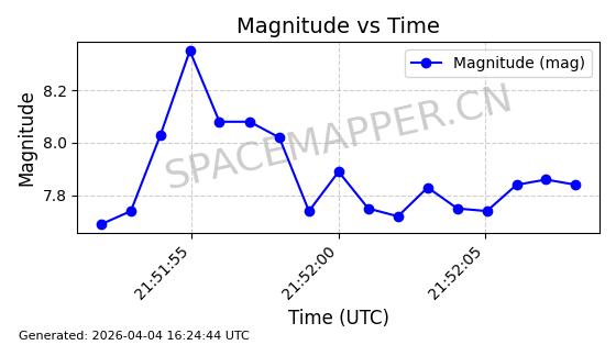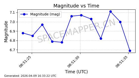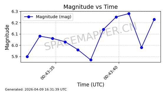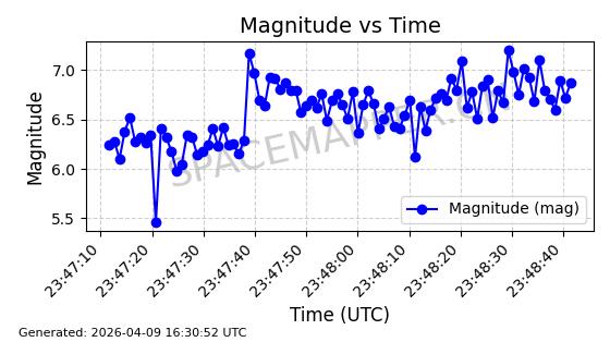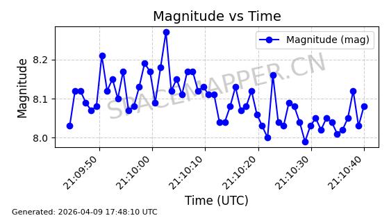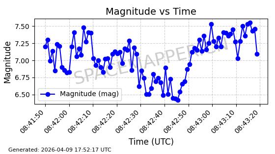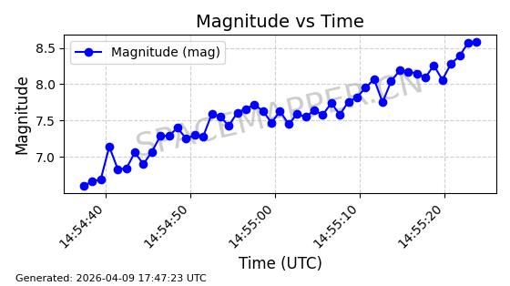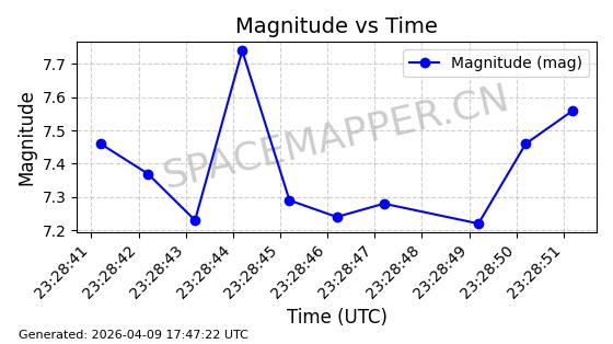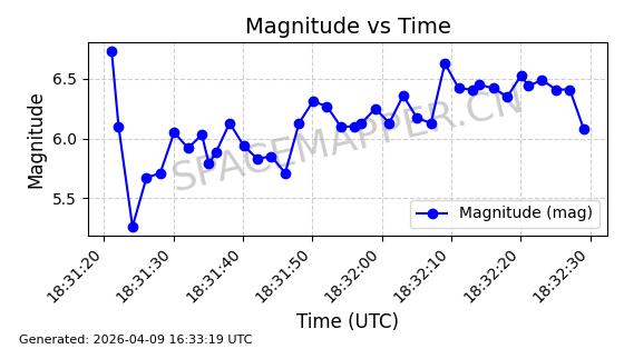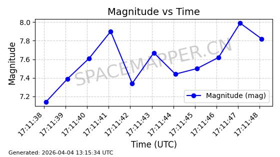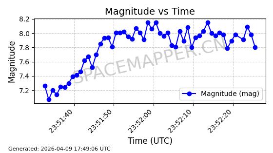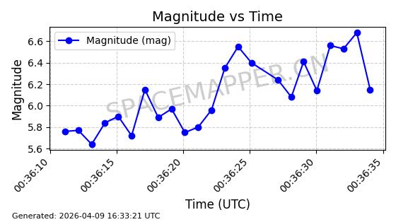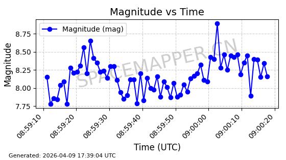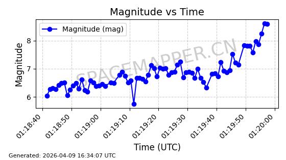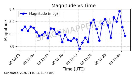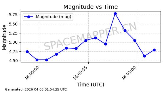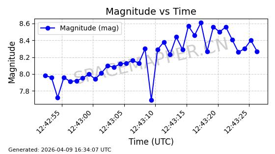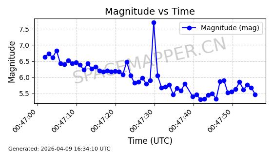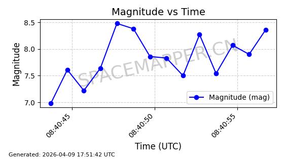 | STARLINK-5120 | 53982 | 53982 | 2022-10-05 同日期轨道 2022-125U 同批次轨道 | 在轨 | 95分钟 | 53.2174 | 538.713 | 540.789 | 0.0001500 | 2026-04-08 05:50:39 | ||