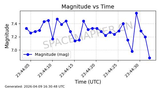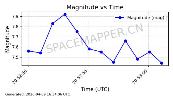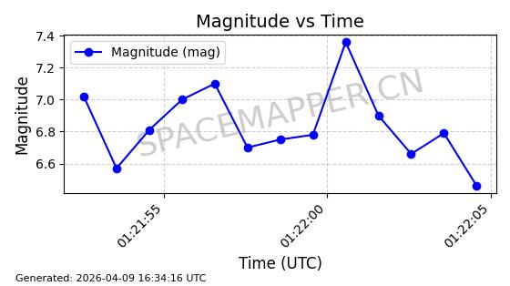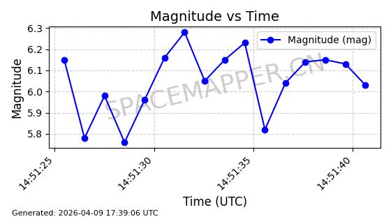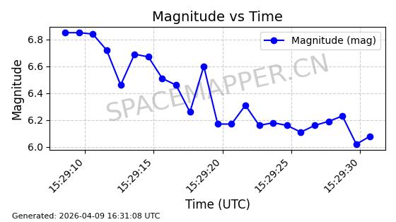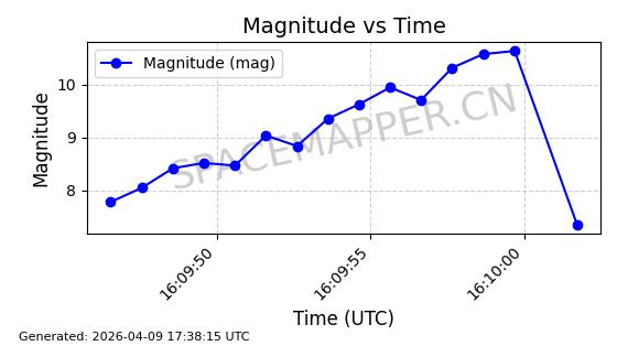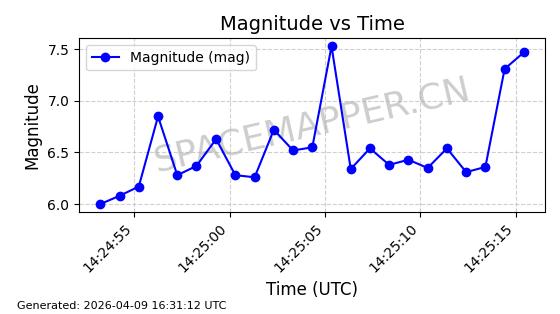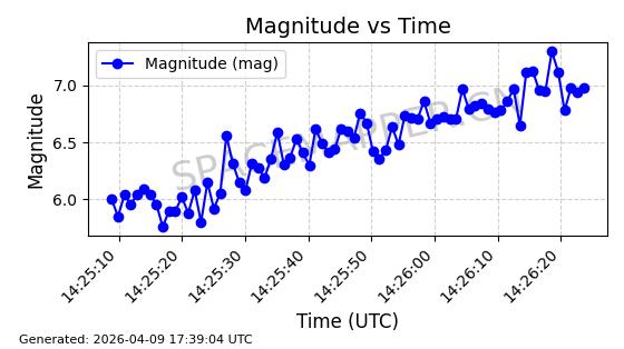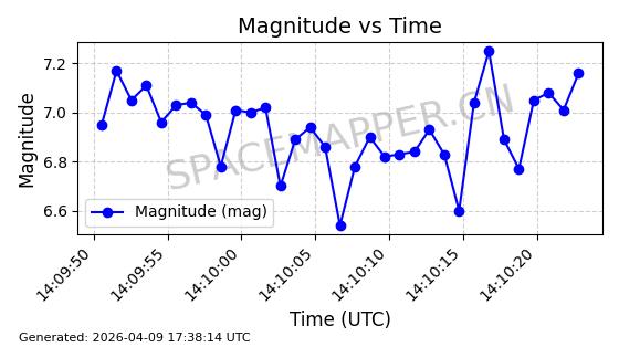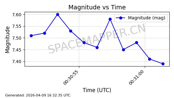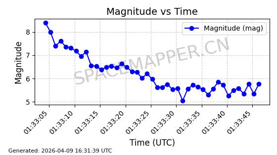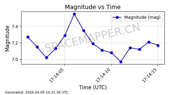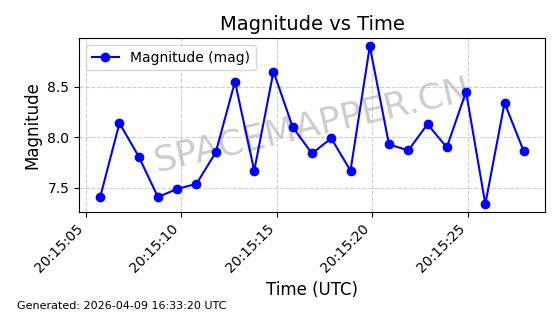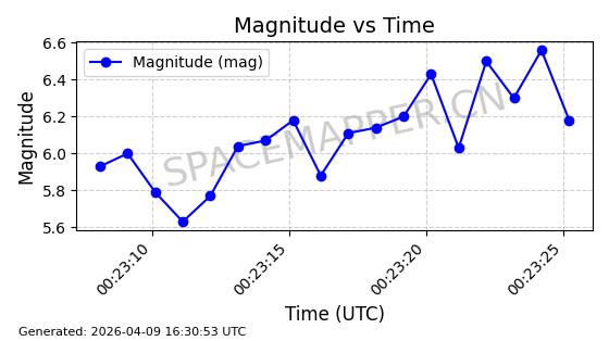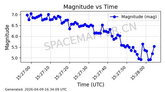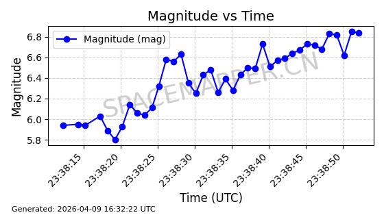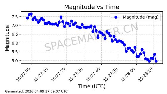 | STARLINK-5209 | 54061 | 54061 | 2022-10-20 同日期轨道 2022-136L 同批次轨道 | 在轨 | 95分钟 | 53.2155 | 538.962 | 540.494 | 0.0001107 | 2026-04-07 22:15:30 | ||