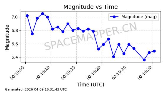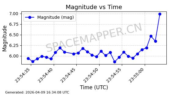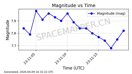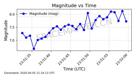 | STARLINK-5169 | 54060 | 54060 | 2022-10-20 同日期轨道 2022-136K 同批次轨道 | 在轨 | 95分钟 | 53.2184 | 538.961 | 540.557 | 0.0001153 | 2026-04-07 22:17:30 | ||