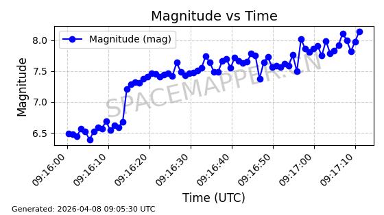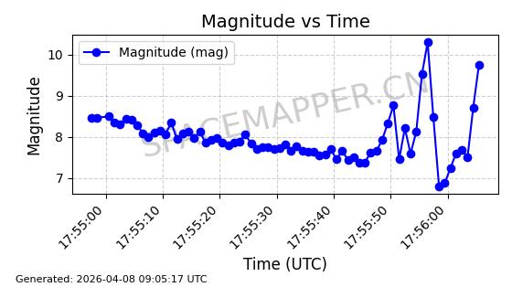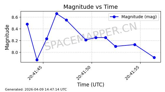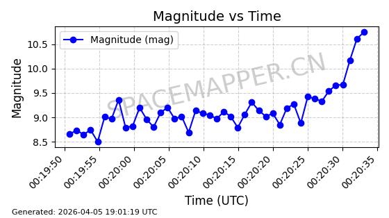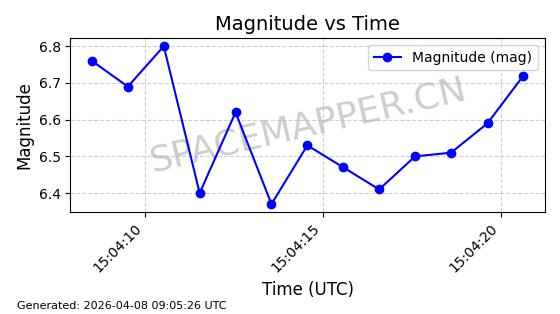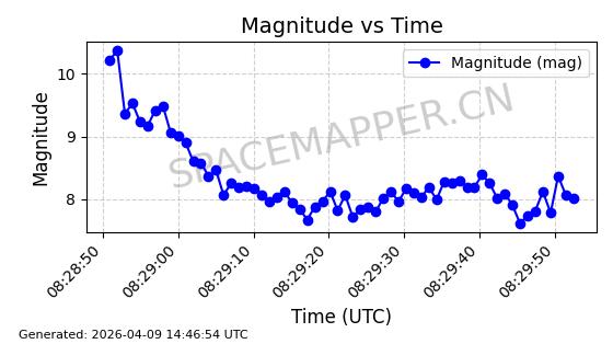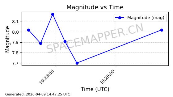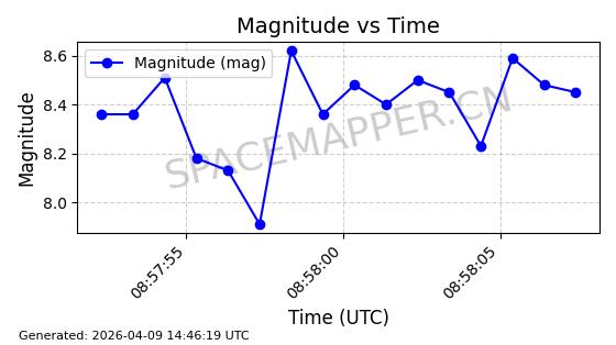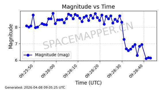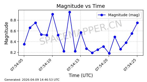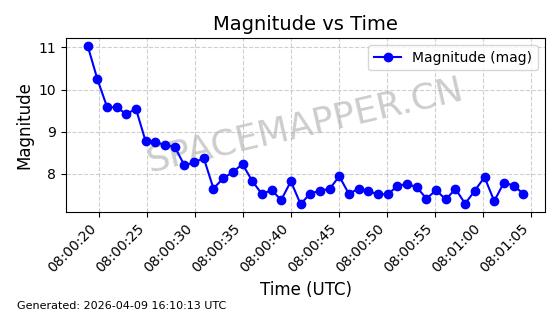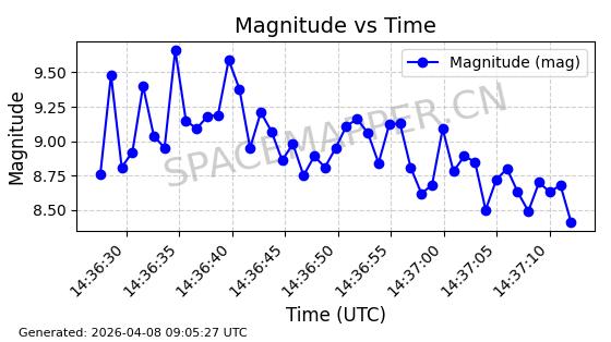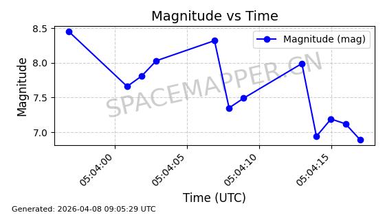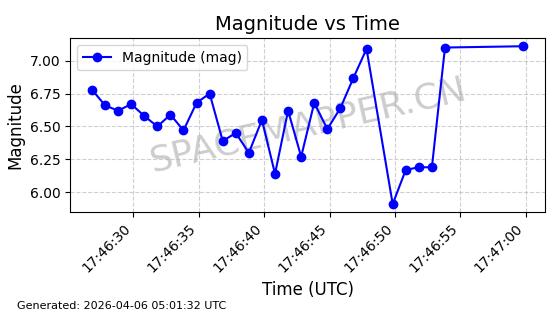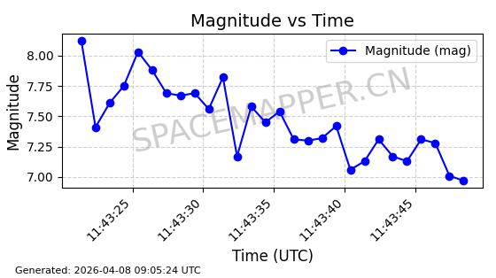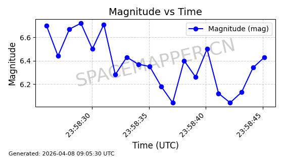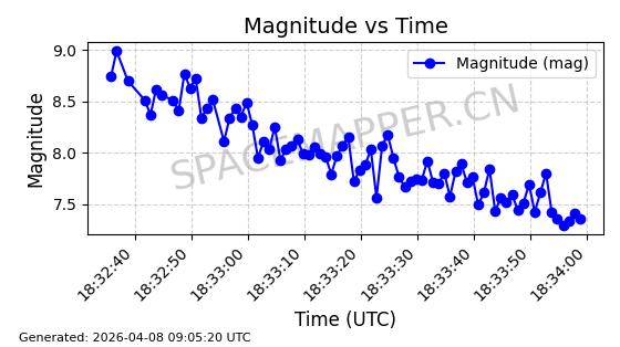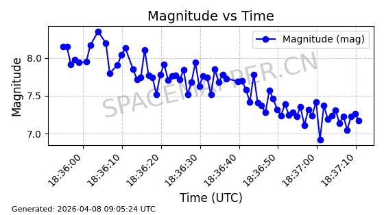| STARLINK-5401 | 54870 | 54870 | 2022-12-28 同日期轨道 2022-177BC 同批次轨道 | 在轨 | 94分钟 | 43.0008 | 484.534 | 486.588 | 0.0001496 | 2026-04-08 06:47:28 | ||