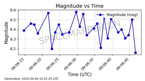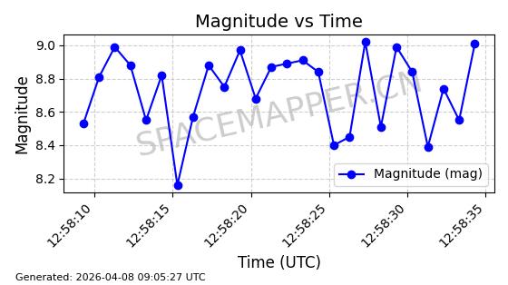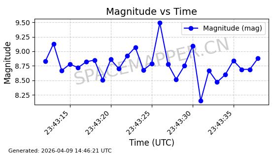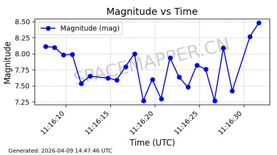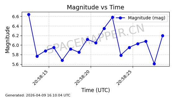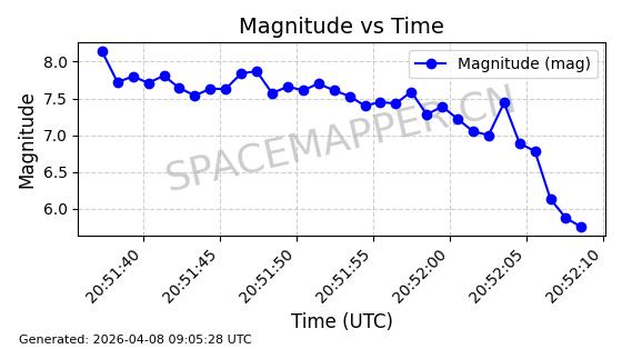| STARLINK-5398 | 54866 | 54866 | 2022-12-28 同日期轨道 2022-177AY 同批次轨道 | 在轨 | 94分钟 | 43.0033 | 482.323 | 483.807 | 0.0001081 | 2026-04-08 07:10:37 | ||