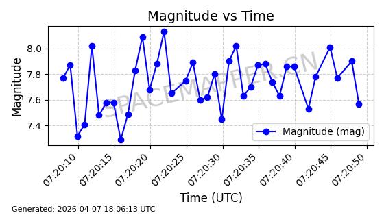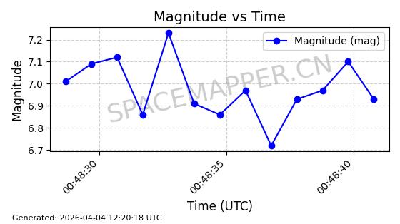 | STARLINK-5411 | 54865 | 54865 | 2022-12-28 同日期轨道 2022-177AX 同批次轨道 | 在轨 | 94分钟 | 42.9983 | 485.211 | 485.903 | 0.0000503 | 2026-04-07 23:48:54 | ||