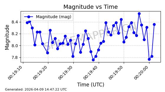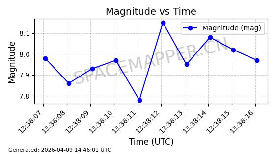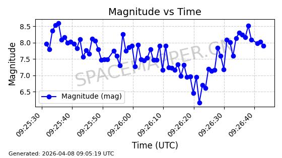 | STARLINK-5422 | 54804 | 54804 | 2022-12-17 同日期轨道 2022-175AY 同批次轨道 | 在轨 | 95分钟 | 53.2176 | 538.88 | 540.64 | 0.0001272 | 2026-04-08 03:33:26 | ||