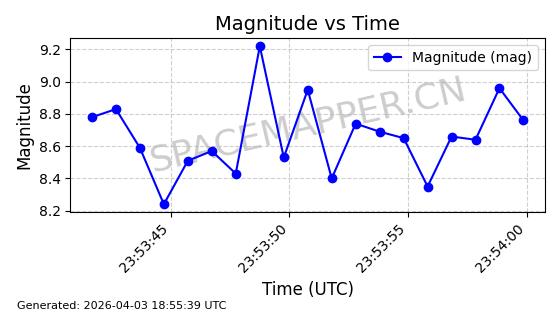 | STARLINK-5420 | 54798 | 54798 | 2022-12-17 同日期轨道 2022-175AS 同批次轨道 | 在轨 | 95分钟 | 53.2169 | 538.862 | 540.652 | 0.0001293 | 2026-04-08 02:25:55 | ||