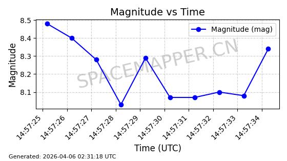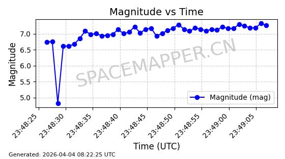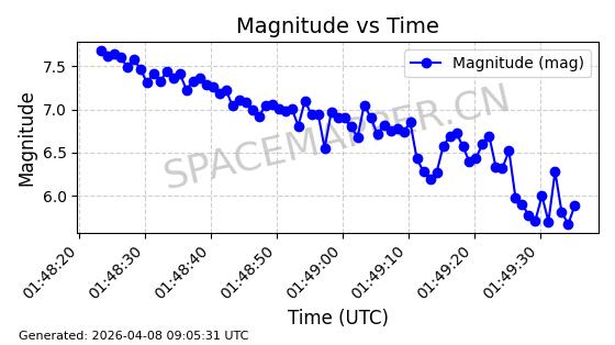 | STARLINK-5432 | 54848 | 54848 | 2022-12-28 同日期轨道 2022-177AE 同批次轨道 | 在轨 | 94分钟 | 43.0058 | 483.973 | 487.399 | 0.0002495 | 2026-04-08 00:13:00 | ||