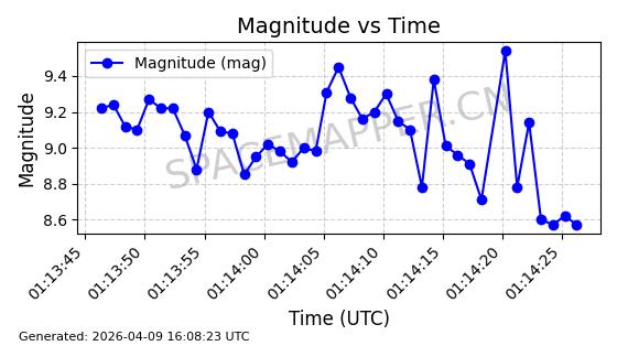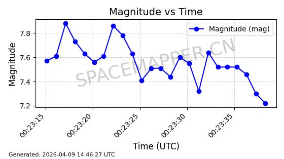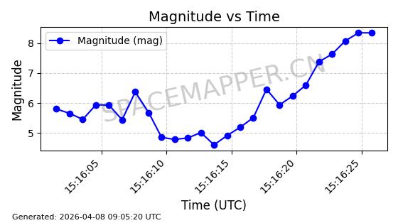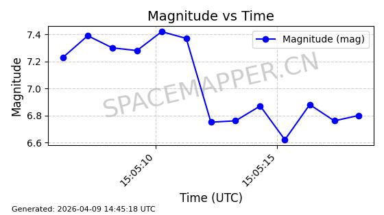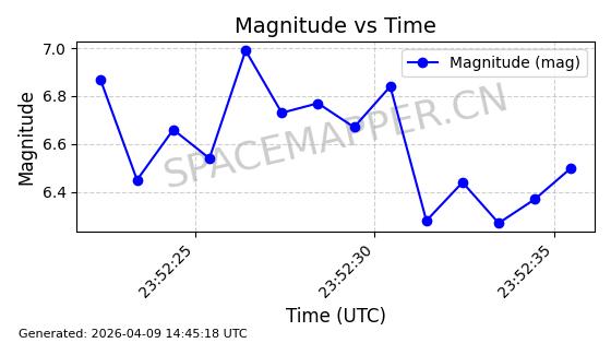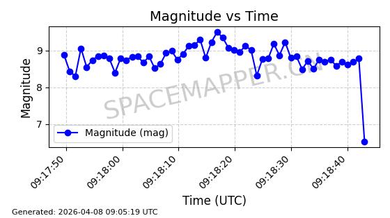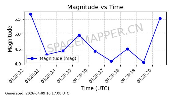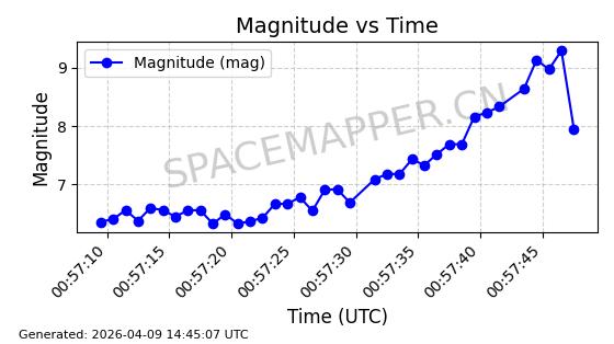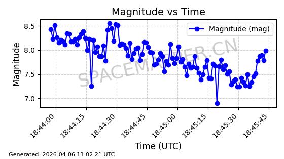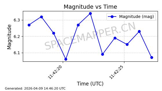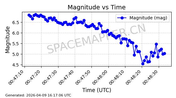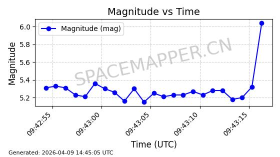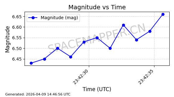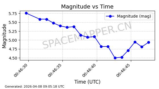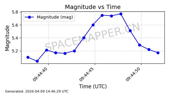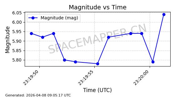 | STARLINK-5375 | 56140 | 56140 | 2023-03-29 同日期轨道 2023-046BA 同批次轨道 | 在轨 | 94分钟 | 43.0014 | 483.175 | 484.411 | 0.0000900 | 2026-04-08 00:49:36 | ||