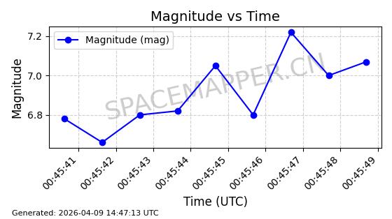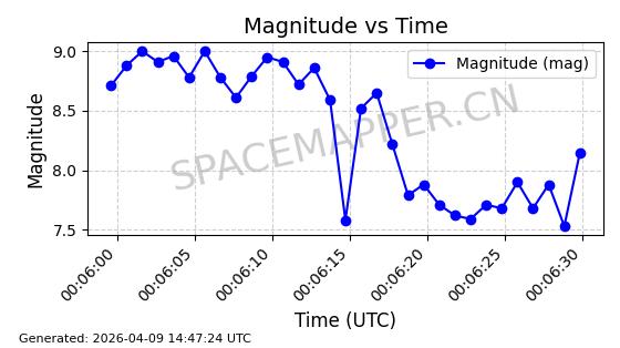 | STARLINK-5390 | 54872 | 54872 | 2022-12-28 同日期轨道 2022-177BE 同批次轨道 | 已陨落 | 88分钟 | 42.9855 | 166.167 | 176.465 | 0.0007861 | 2026-02-06 20:56:20 | ||