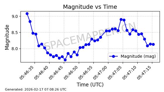 | STARLINK-1548 | 46054 | 46054 | 2020-08-07 同日期轨道 2020-055AD 同批次轨道 | 在轨 | 95分钟 | 53.0839 | 524.425 | 525.171 | 0.0000539 | 2026-02-16 06:00:02 | ||