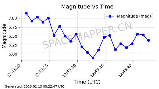 | STARLINK-1489 | 45776 | 45776 | 2020-06-13 同日期轨道 2020-038AY 同批次轨道 | 已陨落 | 87分钟 | 53.0202 | 146.195 | 148.251 | 0.0001575 | 2025-06-20 15:20:00 | ||