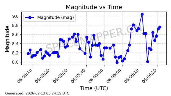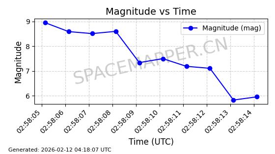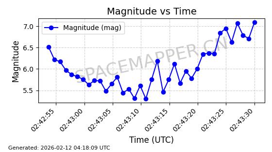 | STARLINK-1510 | 45784 | 45784 | 2020-06-13 同日期轨道 2020-038BG 同批次轨道 | 已陨落 | 87分钟 | 53.0098 | 142.724 | 146.088 | 0.0002578 | 2026-01-06 04:45:07 | ||