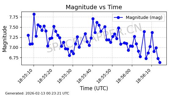 | STARLINK-1554 | 46055 | 46055 | 2020-08-07 同日期轨道 2020-055AE 同批次轨道 | 在轨 | 95分钟 | 53.0814 | 525.663 | 526.957 | 0.0000937 | 2026-02-16 06:00:02 | ||