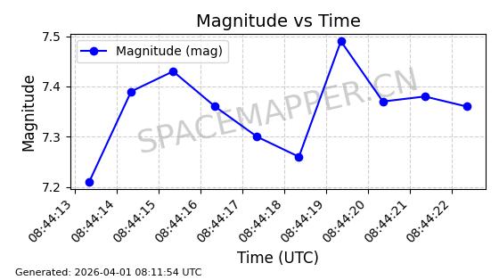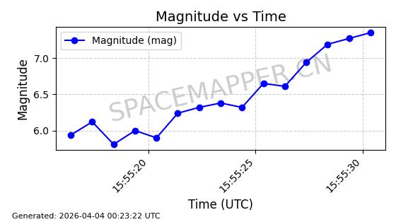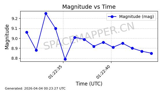 | STARLINK-1328 | 45576 | 45576 | 2020-04-22 同日期轨道 2020-025AX 同批次轨道 | 已陨落 | 88分钟 | 53.0340 | 153.175 | 160.037 | 0.0005250 | 2026-01-15 02:48:34 | ||