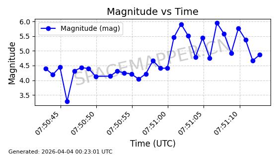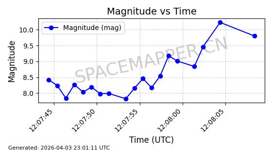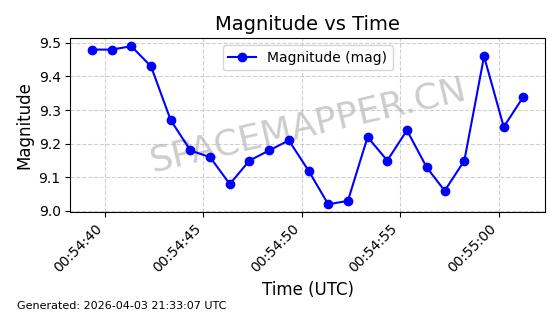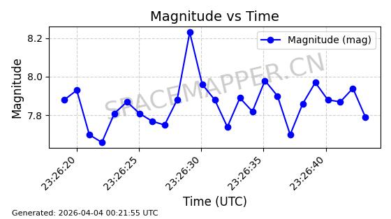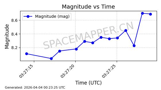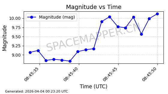 | STARLINK-1333 | 45580 | 45580 | 2020-04-22 同日期轨道 2020-025BB 同批次轨道 | 在轨 | 94分钟 | 53.1586 | 474.401 | 476.019 | 0.0001179 | 2026-04-03 01:20:19 | ||