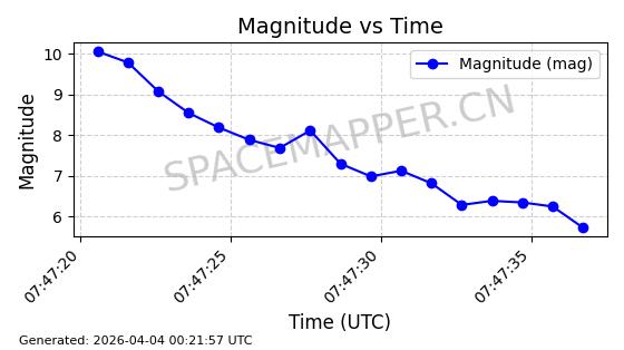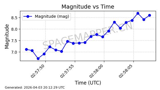 | STARLINK-1366 | 45569 | 45569 | 2020-04-22 同日期轨道 2020-025AQ 同批次轨道 | 在轨 | 91分钟 | 53.0383 | 322.096 | 327.344 | 0.0003914 | 2026-04-03 06:00:01 | ||