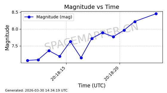 | STARLINK-1318 | 45416 | 45416 | 2020-03-18 同日期轨道 2020-019BJ 同批次轨道 | 已陨落 | 87分钟 | 53.0199 | 148.834 | 151.666 | 0.0002168 | 2026-03-01 13:56:15 | ||