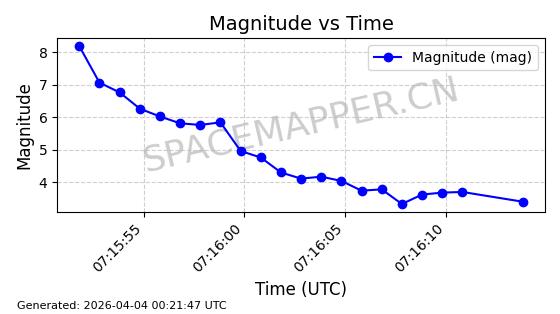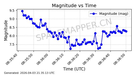 | STARLINK-1448 | 45665 | 45665 | 2020-06-04 同日期轨道 2020-035J 同批次轨道 | 在轨 | 92分钟 | 53.0481 | 390.481 | 399.277 | 0.0006492 | 2026-04-03 06:27:50 | ||