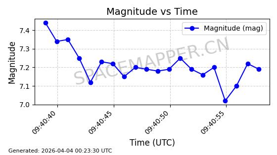 | STARLINK-1349 | 45587 | 45587 | 2020-04-22 同日期轨道 2020-025BJ 同批次轨道 | 已陨落 | 88分钟 | 53.0321 | 172.222 | 181.684 | 0.0007216 | 2025-09-18 04:27:29 | ||