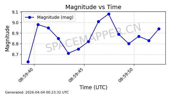| STARLINK-1332 | 45579 | 45579 | 2020-04-22 同日期轨道 2020-025BA 同批次轨道 | 已陨落 | 88分钟 | 53.0181 | 150.402 | 160.55 | 0.0007765 | 2025-05-05 21:19:46 | ||