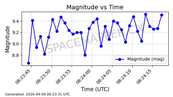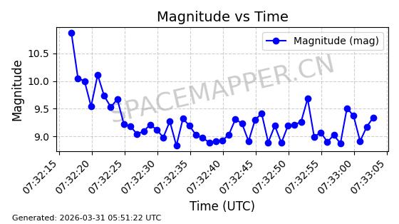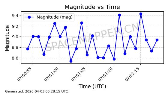 | STARLINK-1298 | 45413 | 45413 | 2020-03-18 同日期轨道 2020-019BF 同批次轨道 | 已陨落 | 88分钟 | 53.0202 | 176.48 | 184.654 | 0.0006230 | 2026-03-29 01:29:17 | ||