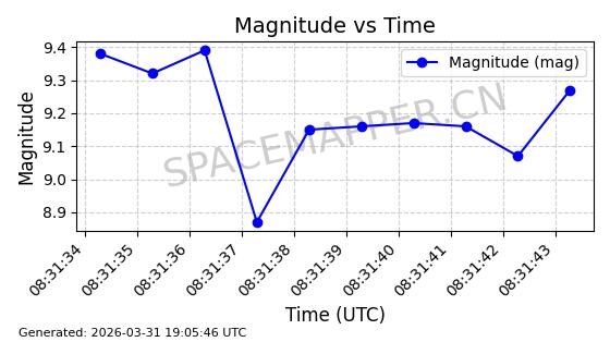 | STARLINK-1312 | 45398 | 45398 | 2020-03-18 同日期轨道 2020-019AQ 同批次轨道 | 已陨落 | 88分钟 | 53.0284 | 176.584 | 182.036 | 0.0004156 | 2025-11-10 07:54:56 | ||