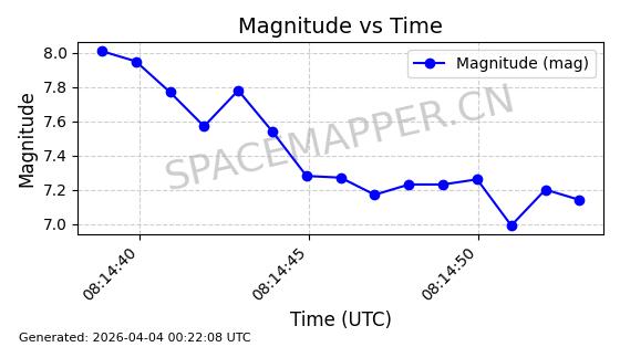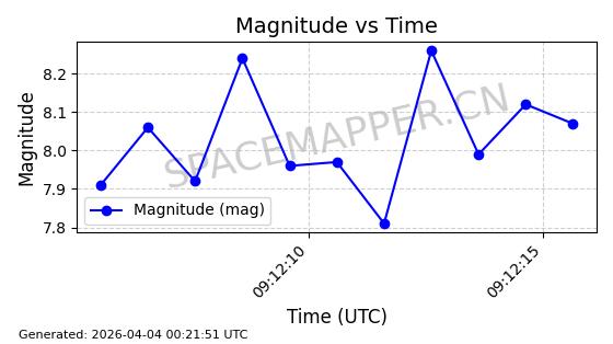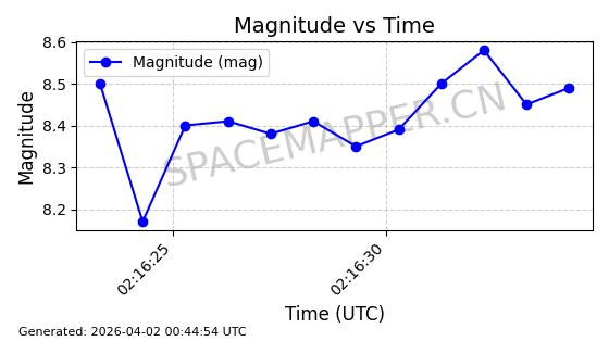 | 卫星名称 | AOE ID | NORAD ID | 发射日期 国际编号 | 在轨状态 | 轨道周期 | 轨道倾角 (度) | 近地点 (Km) | 远地点 (Km) | 偏心率 | 更新时间 (UTC) | 近期光变曲线 | 服务 |