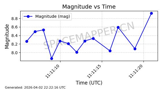 | STARLINK-1337 | 45582 | 45582 | 2020-04-22 同日期轨道 2020-025BD 同批次轨道 | 在轨 | 92分钟 | 53.0512 | 375.694 | 382.164 | 0.0004787 | 2026-04-03 03:41:25 | ||