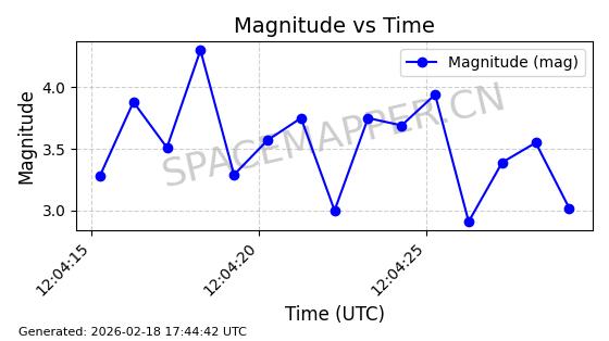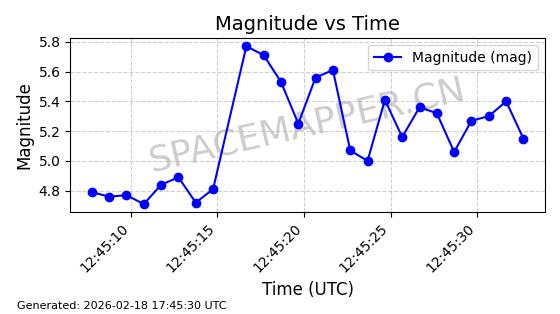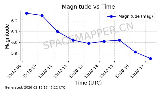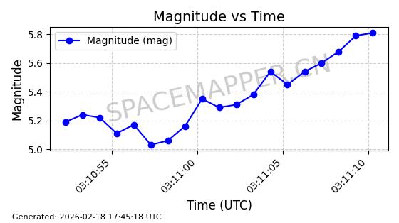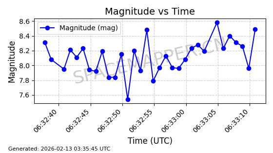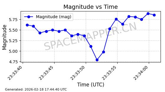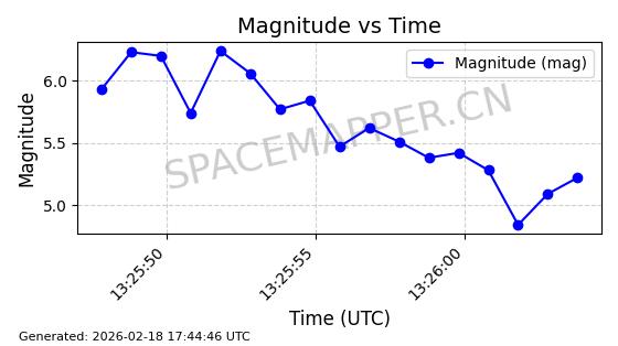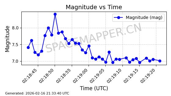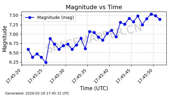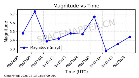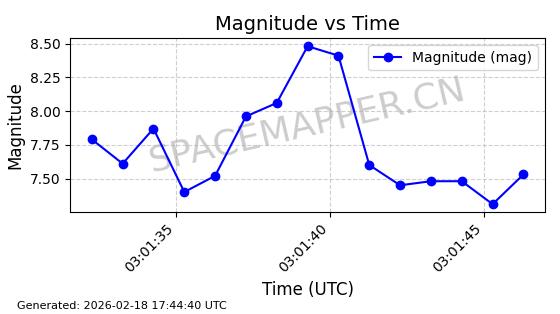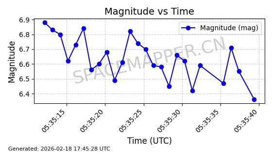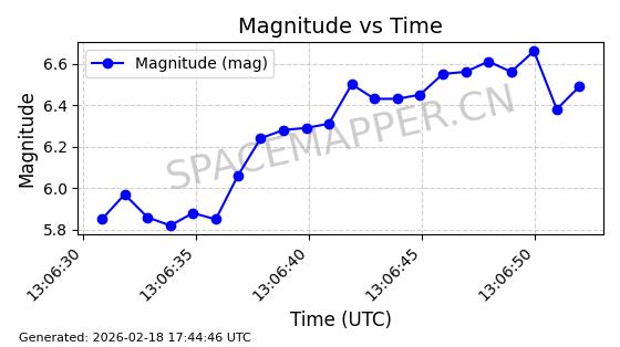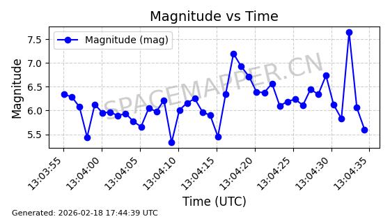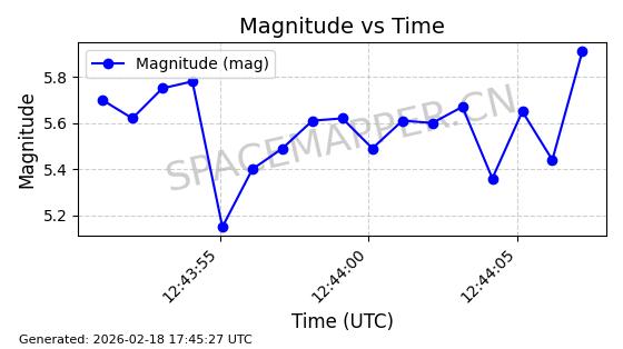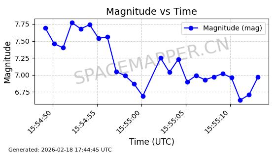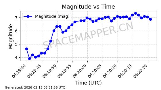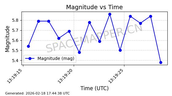 | STARLINK-31648 | 59266 | 59266 | 2024-03-19 同日期轨道 2024-050N 同批次轨道 | 在轨 | 94分钟 | 53.1591 | 474.262 | 476.224 | 0.0001430 | 2026-02-18 01:22:16 | ||