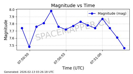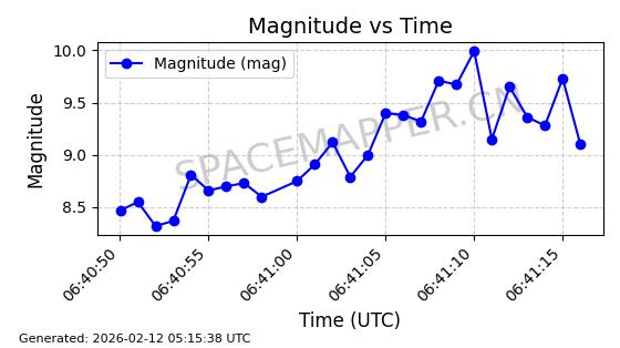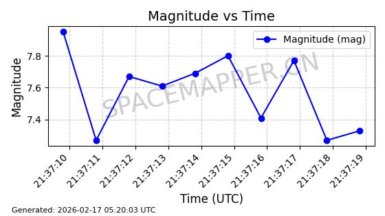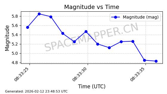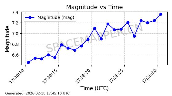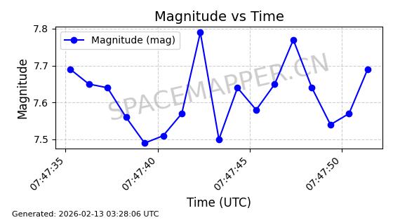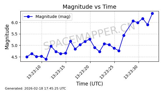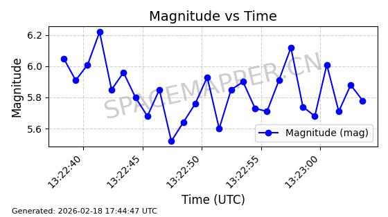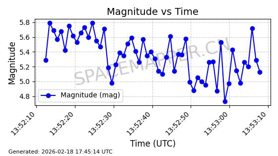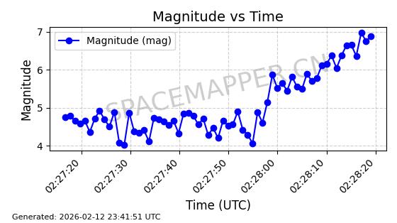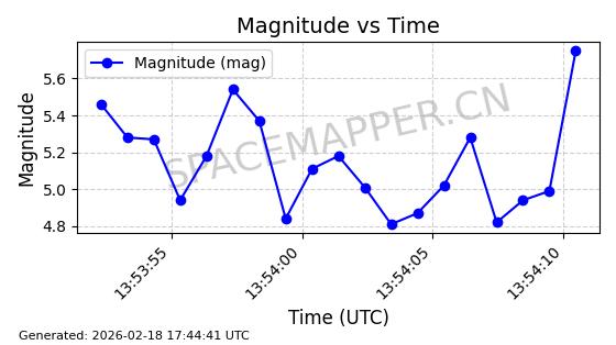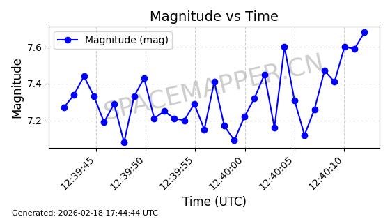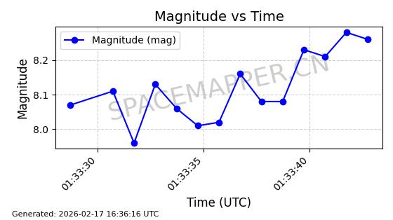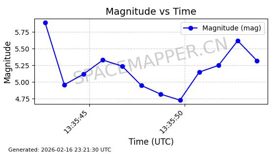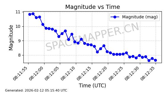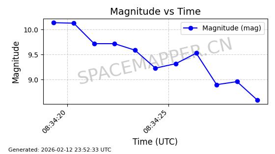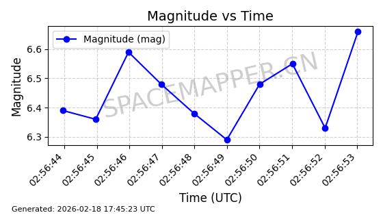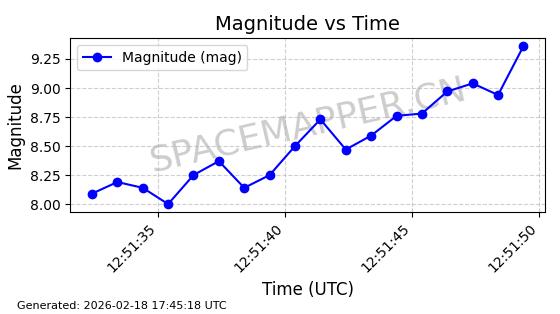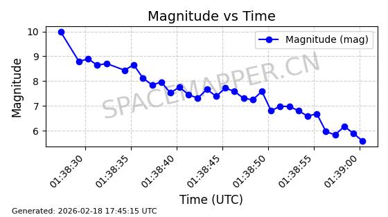 | STARLINK-31648 | 59266 | 59266 | 2024-03-19 同日期轨道 2024-050N 同批次轨道 | 在轨 | 94分钟 | 53.1591 | 474.262 | 476.224 | 0.0001430 | 2026-02-18 01:22:16 | ||