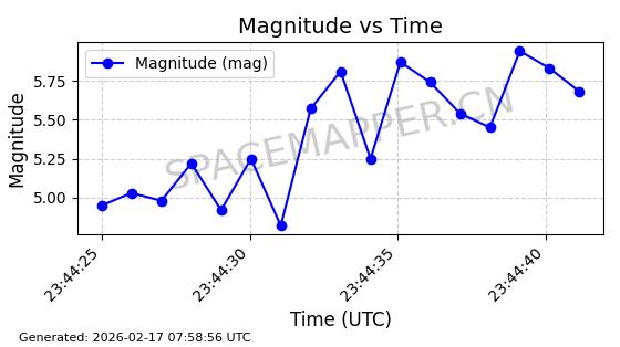 | STARLINK-31340 | 59170 | 59170 | 2024-03-04 同日期轨道 2024-044U 同批次轨道 | 在轨 | 94分钟 | 43.0017 | 482.056 | 484.098 | 0.0001488 | 2026-02-17 08:36:08 | ||