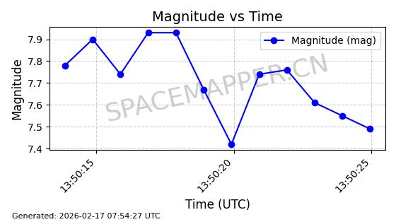 | STARLINK-31405 | 59248 | 59248 | 2024-03-16 同日期轨道 2024-049T 同批次轨道 | 在轨 | 94分钟 | 42.9994 | 482.469 | 483.589 | 0.0000815 | 2026-02-17 14:40:52 | ||