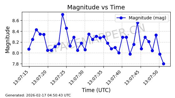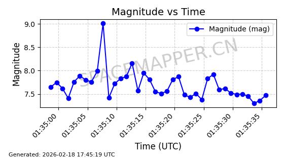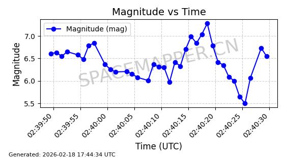 | STARLINK-31629 | 59255 | 59255 | 2024-03-19 同日期轨道 2024-050B 同批次轨道 | 在轨 | 94分钟 | 53.1600 | 474.54 | 476.02 | 0.0001079 | 2026-02-18 00:01:53 | ||