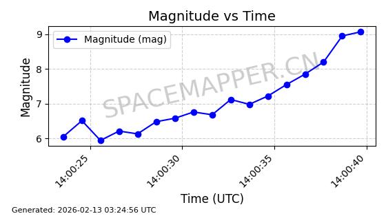 | STARLINK-31284 | 59246 | 59246 | 2024-03-16 同日期轨道 2024-049R 同批次轨道 | 在轨 | 94分钟 | 42.9999 | 482.359 | 483.785 | 0.0001038 | 2026-02-17 23:34:21 | ||