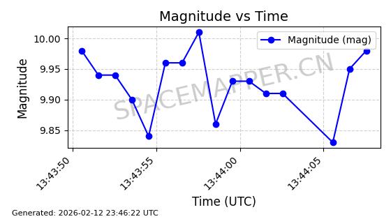 | STARLINK-31576 | 59208 | 59208 | 2024-03-11 同日期轨道 2024-046H 同批次轨道 | 在轨 | 94分钟 | 53.1572 | 474.363 | 476.103 | 0.0001269 | 2026-02-17 21:48:15 | ||