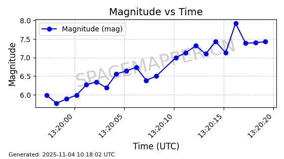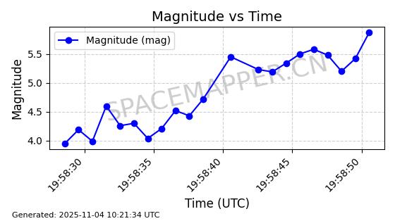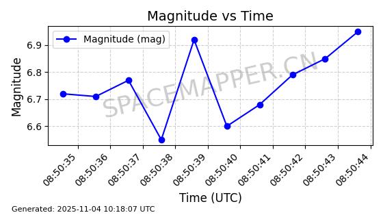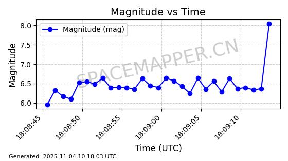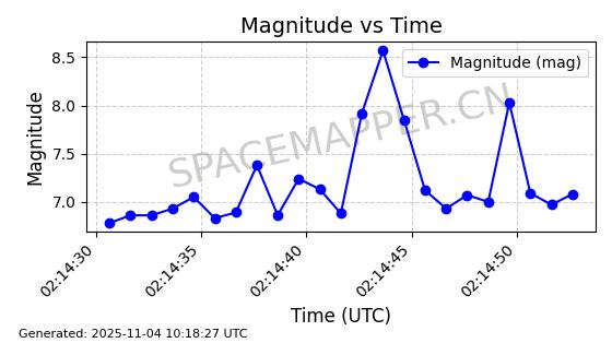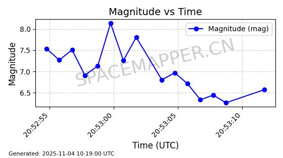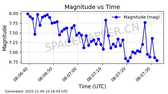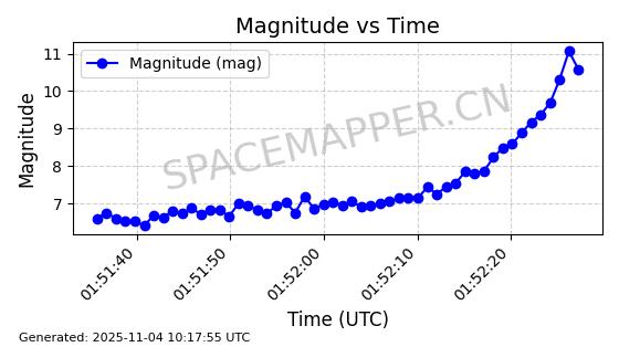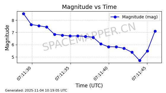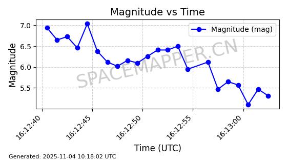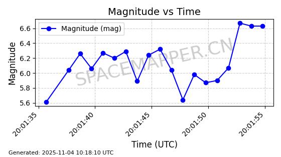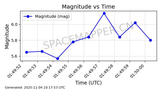 | STARLINK-5714 | 55614 | 55614 | 2023-02-12 同日期轨道 2023-020AX 同批次轨道  |  在轨 | 96分钟 | 43.0049 | 558.228 | 559.964 | 0.0001250 | 2025-11-02  06:51:39  |  ||