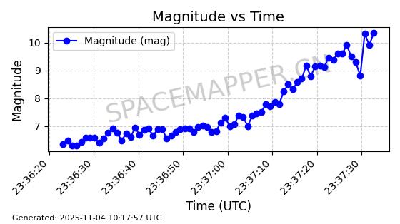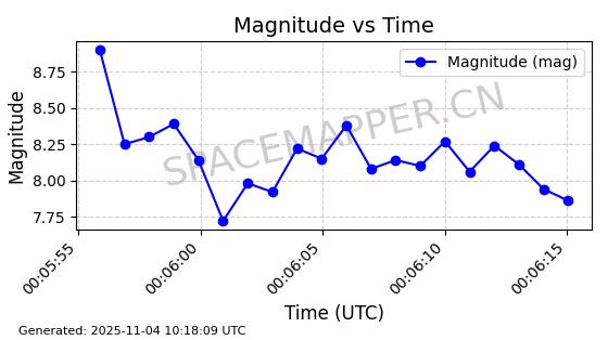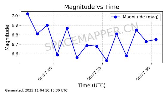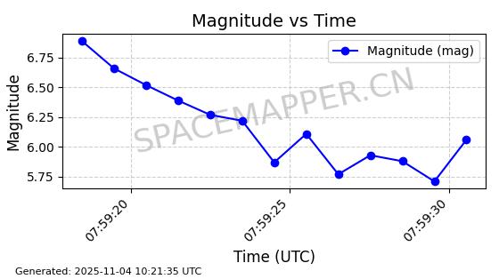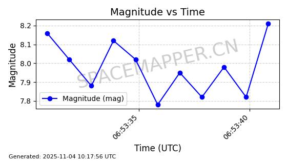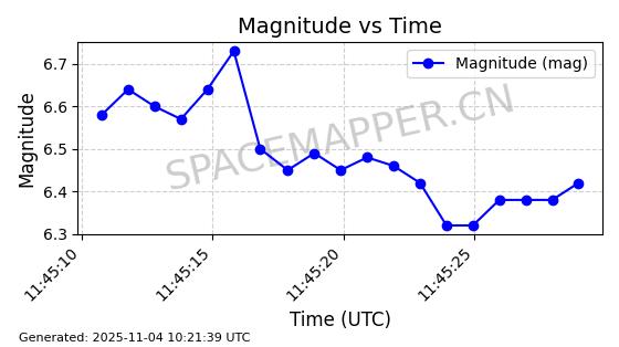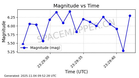 | STARLINK-5731 | 56924 | 56924 | 2023-06-12 同日期轨道 2023-083BA 同批次轨道  |  在轨 | 96分钟 | 43.0045 | 558.09 | 560.038 | 0.0001403 | 2025-11-01  23:38:02  |  ||