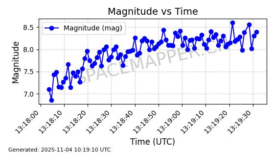 | STARLINK-5710 | 55616 | 55616 | 2023-02-12 同日期轨道 2023-020AZ 同批次轨道  |  在轨 | 96分钟 | 43.0036 | 558.345 | 559.829 | 0.0001069 | 2025-11-02  11:14:30  |  ||