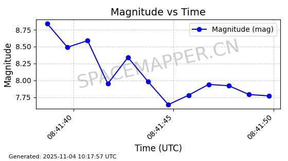 | STARLINK-5713 | 55578 | 55578 | 2023-02-12 同日期轨道 2023-020K 同批次轨道  |  已陨落 | 87分钟 | 42.9688 | 138.848 | 149.322 | 0.0008029 | 2025-04-08  04:18:17  |  ||
