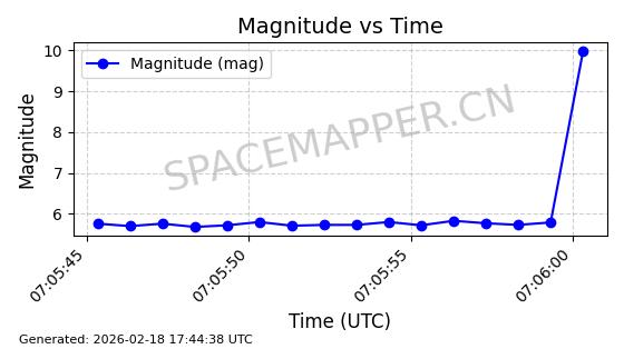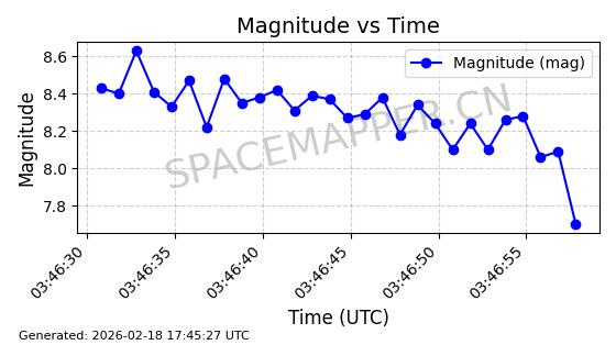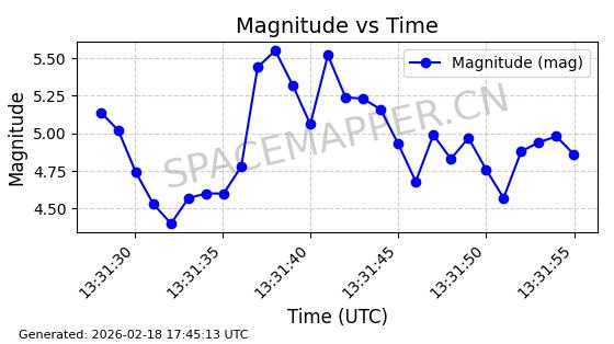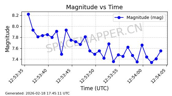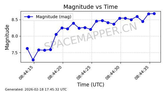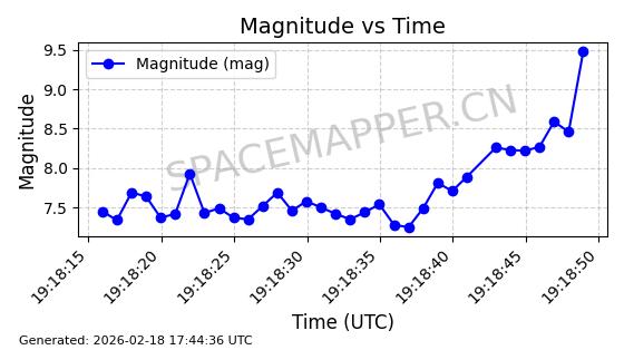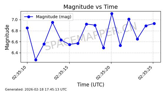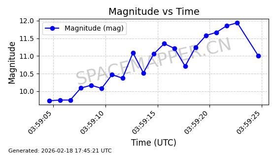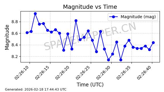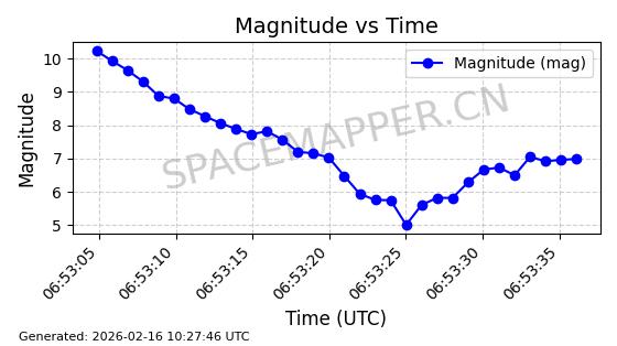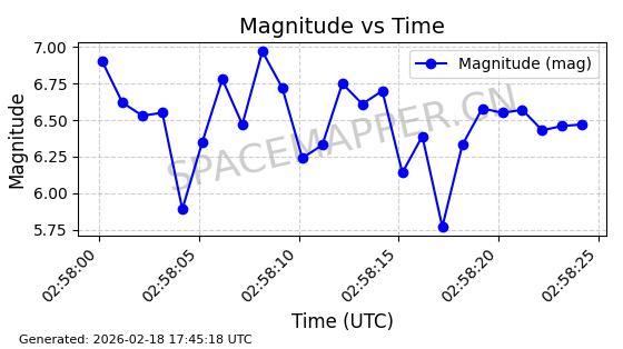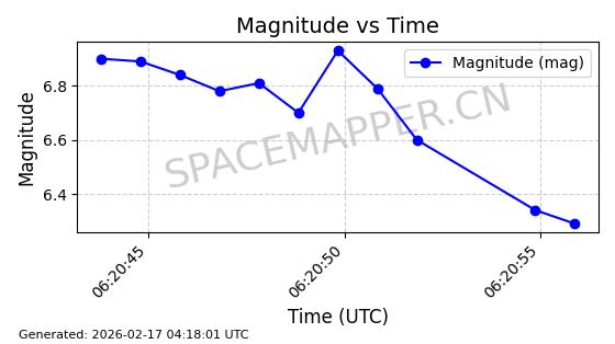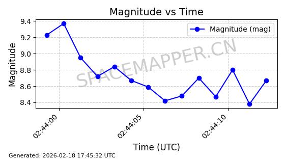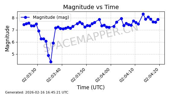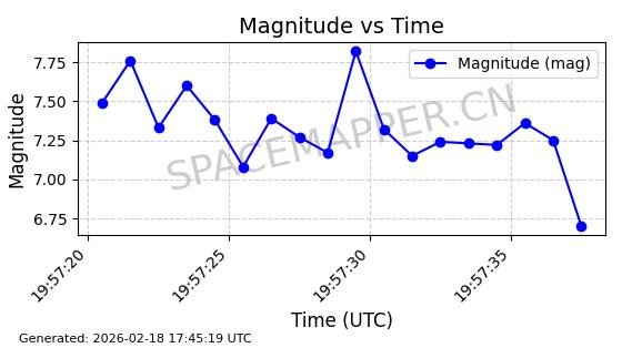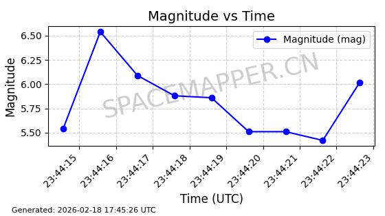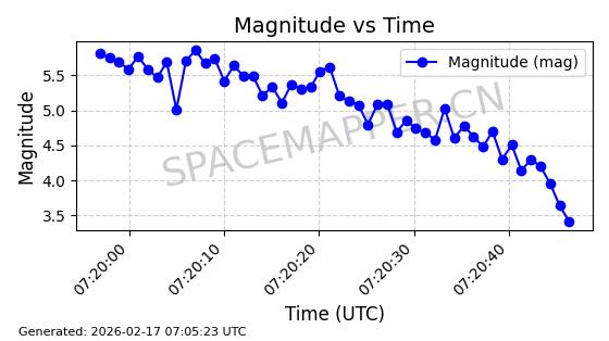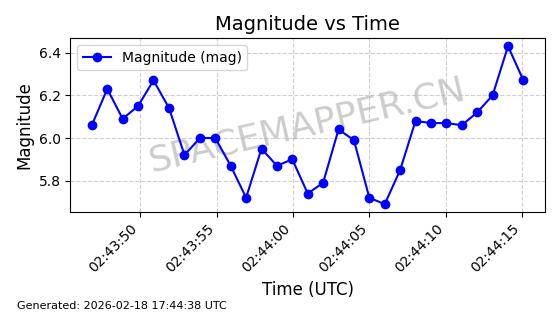 | STARLINK-31633 | 59331 | 59331 | 2024-03-25 同日期轨道 2024-057M 同批次轨道 | 在轨 | 94分钟 | 43.0039 | 482.05 | 484.07 | 0.0001472 | 2026-02-18 01:15:30 | ||