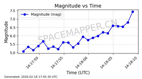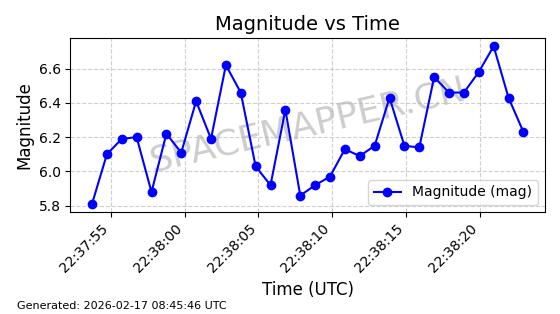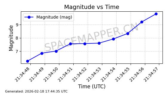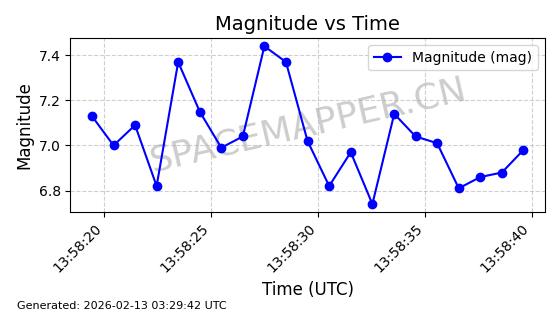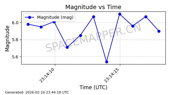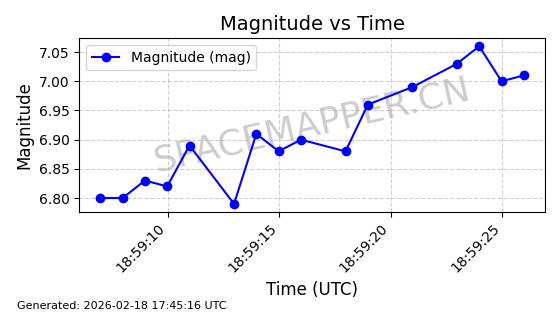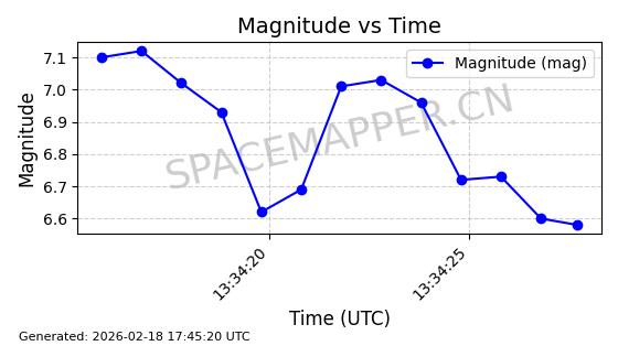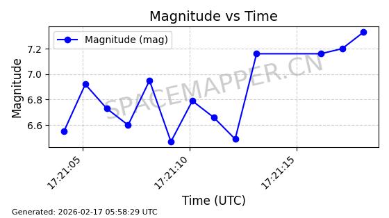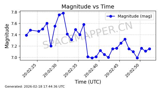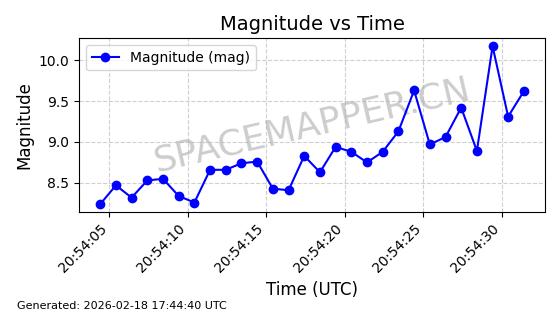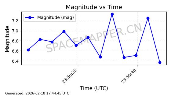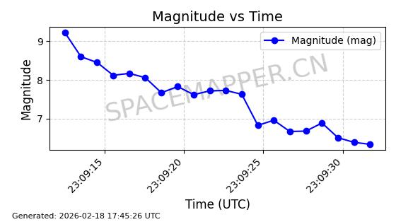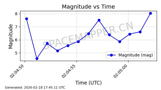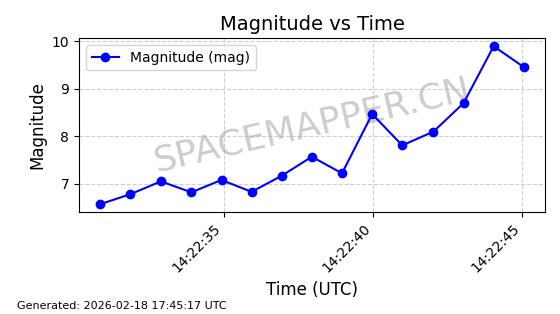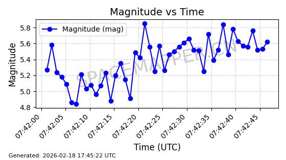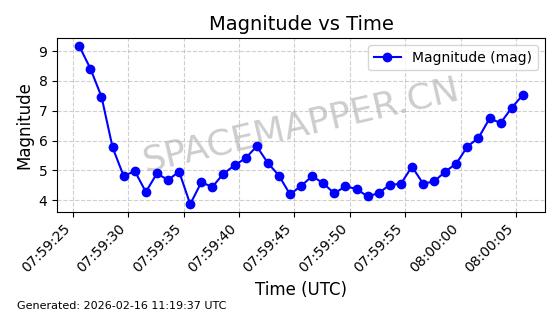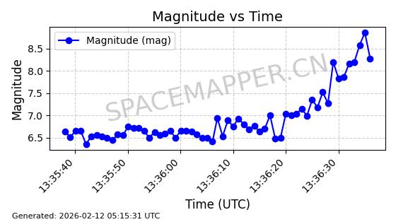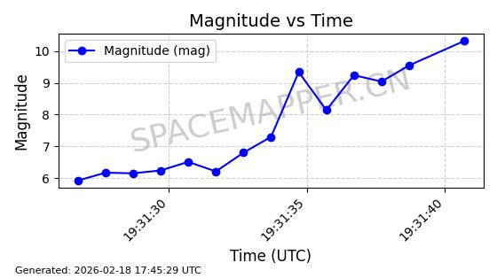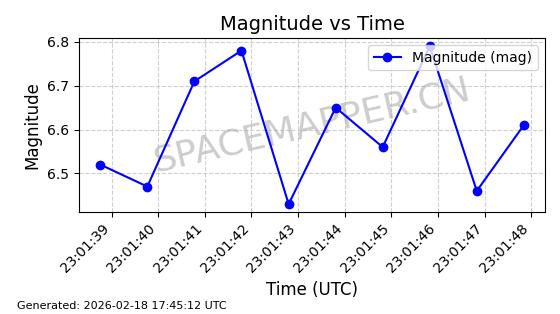 | STARLINK-31633 | 59331 | 59331 | 2024-03-25 同日期轨道 2024-057M 同批次轨道 | 在轨 | 94分钟 | 43.0039 | 482.05 | 484.07 | 0.0001472 | 2026-02-18 01:15:30 | ||
