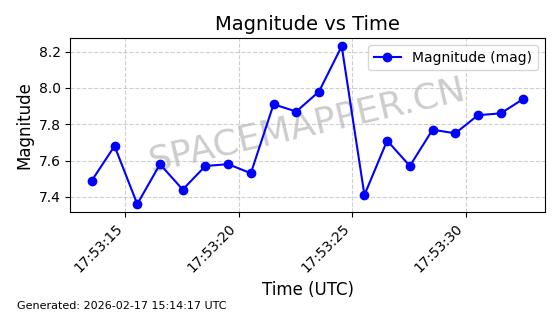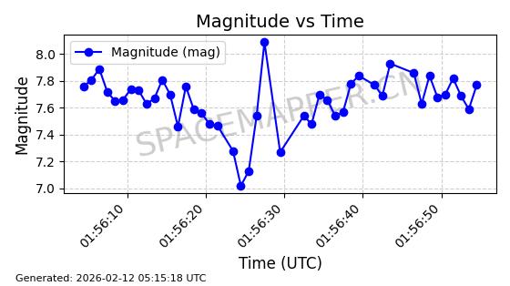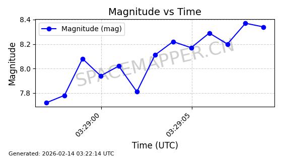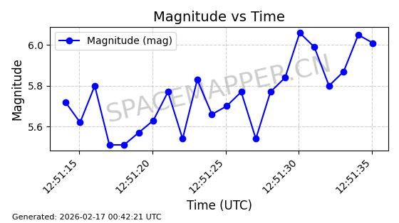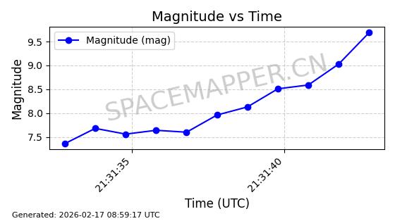 | STARLINK-31402 | 59320 | 59320 | 2024-03-25 同日期轨道 2024-057A 同批次轨道 | 在轨 | 94分钟 | 43.0020 | 481.811 | 484.303 | 0.0001816 | 2026-02-17 23:09:05 | ||