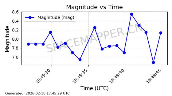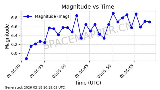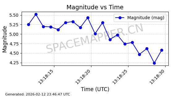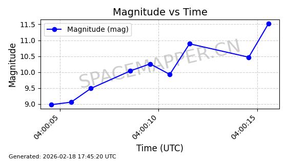 | STARLINK-31573 | 59334 | 59334 | 2024-03-25 同日期轨道 2024-057Q 同批次轨道 | 在轨 | 94分钟 | 43.0023 | 482.392 | 483.766 | 0.0001001 | 2026-02-18 01:43:02 | ||