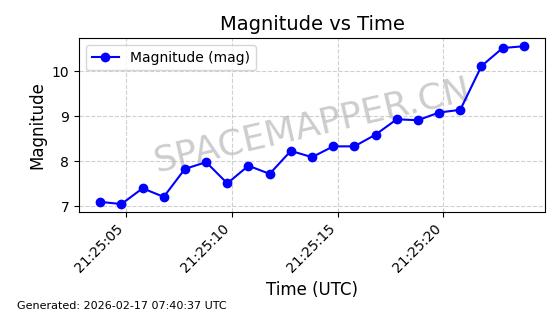| STARLINK-31596 | 59336 | 59336 | 2024-03-25 同日期轨道 2024-057S 同批次轨道 | 在轨 | 94分钟 | 43.0030 | 482.217 | 483.905 | 0.0001230 | 2026-02-18 01:57:50 | ||